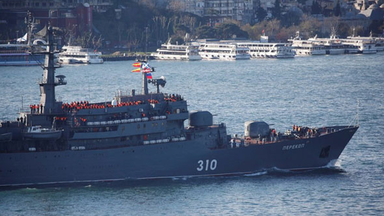 Suriye'de yedinci yılını dolduran iç savaşa 2015'ten bu yana rejimi desteklemek için katılan Rusya, bir savaş gemisini daha Akdeniz'e gönderdi. Akdeniz'e gönderilen Rus Donanması'na ait eğitim gemisi Perekop, İstanbul Boğazı'ndan geçti. Akdeniz'e doğru ilerleyen Rus Donanması'na ait eğitim gemisi Perekop'ta, can yeleği giyen askerler dikkat çekti. Mart ayı içerisinde Amiral Essen ve Pytlivy isimli Rus gemileri yine İstanbul Boğazı'ndan geçerek Suriye'ye gitmişti. Suriye'de yedinci yılını dolduran iç savaşa 2015'ten bu yana rejimi desteklemek için katılan Rusya, bir savaş gemisini daha Akdeniz'e gönderdi. Rus donanmasına ait Perekop isimli eğitim gemisi, bu sabah İstanbul Boğazı'ndan geçti. Uluslararası haber ajansı Reuters'ın foto muhabiri Murad Sezer, Rus gemisini Ortaköy ve Üsküdar önünde görüntüledi. Reuters'ın karelerinde, can yeleği giymiş onlarca Rus askeri güverteden İstanbul'u izliyor. Mart ayı içerisinde Amiral Essen ve Pytlivy isimli Rus gemileri yine İstanbul Boğazı'ndan geçerek Suriye'ye gitmişti. Beşar Esad tarafından Akdeniz kıyısındaki Tartus deniz üssü Rusya'ya 49 yıllığına bedelsiz verildi. Yarım asır boyunca üsteki Rus faaliyetleri Suriye tarafından denetlenemeyecek, Şam yönetiminin Tartus'ta hiçbir kontrolü olmayacak. 25 yıl uzatma opsiyonu bulunan anlaşmaya göre, Rusya’nın üste barındıracağı taşınabilir ve taşınmaz tüm mallar arama, el koyma ve diğer işlemlere tabi tutulamayacak. Anlaşmadaki "Rusya, donanma tesisini korumak için gerekli sayıda askeri gönderme hakkına sahiptir" ifadesi dikkat çekici.