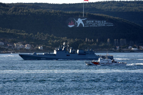 Rus savaş gemilerine boğazı geçişi sırasında çok sayıda Türk sahil güvenlik botu eşlik etti.