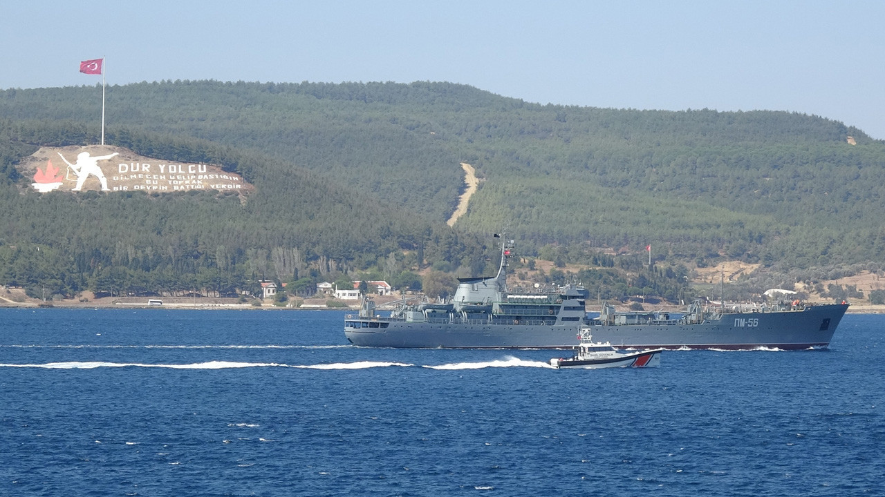 Ege Denizi yönünden Çanakkale Boğazına giriş yapan Rus Donanması'na savaş gemisi saat 12.30 sıralarında Kilitbahir köyünde bulunan ‘Dur Yolcu’ yazısı önlerinde oldu. Daha sonra Nara Burnu açıklarına gelen savaş gemisi Marmara Denizi’ne doğru ilerledi.Rus Donanması’na ait PM-56 borda numaralı ‘Andreevsky’ adlı savaş gemisine Çanakkale Boğazı'nı geçişine Türk Sahil Güvenlik botu refakat etti.Savaş gemisinin geçişi böyle yansıdı: