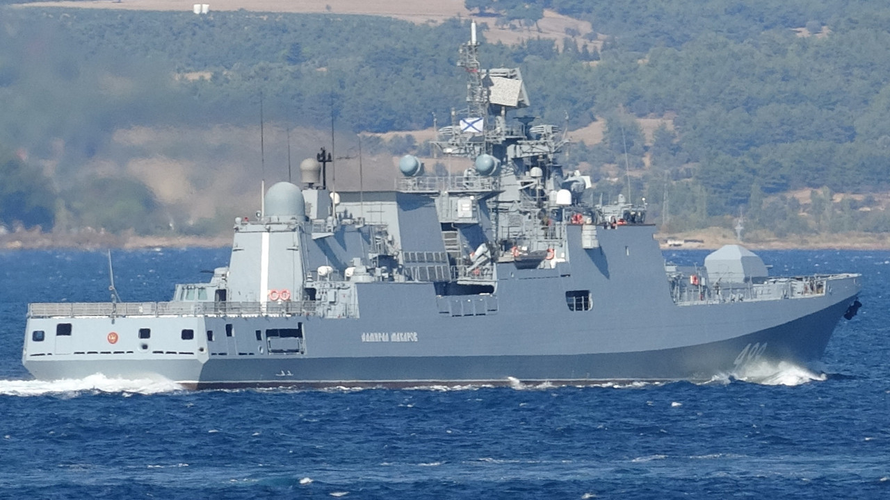 Rus Donanması’na ait 'Admiral Makarov' savaş gemisi Ege Denizi'nden bugün saat 11.00 sıralarında Çanakkale'ye giriş yaptı. 499 borda numaralı gemi Kilitbahir Kalesi ile 'Dur Yolcu' yazısından önünden geçti.Savaş gemisi, Nara Burnu'nu döndükten sonra Marmara Denizi'ne doğru yol aldı.Rus savaş gemisine, boğazdan geçiş sırasında Türk Sahil Güvenlik botu eşlik etti.Gemiden kayda geçen görüntüler: