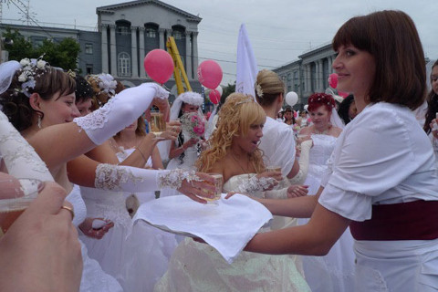 Rusya'da yapılan festival sokağın yalnız gelinlerle dolmasına neden oldu. Kendi gelinlikleri olmayanlar ise kiraladıkları gelinliklerle boy gösterip böyle eğlendi.