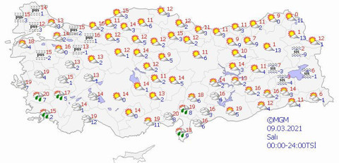 Ege: Parçalı ve az bulutlu, güney kesimlerinin yer yer çok bulutlu, Aydın, Muğla ve Denizli çevrelerinin sağanak yağışlı geçeceği tahmin ediliyor. Bu sabah ve gece saatlerinde iç kesimlerinde yer yer pus ve sis hadisesi bekleniyor.