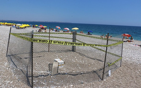 Her gün binlerce kişinin denize girdiği Konyaaltı Sahili'ne gece saatlerinde gelen bir caretta caretta, kumsala yumurtalarını bırakarak denize döndü.