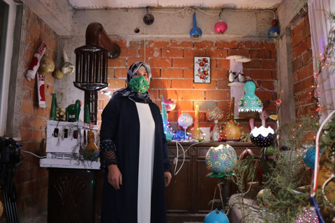 Galerinin tamamı için tıklayınızTasarımları kendine ait olan ürünlerini internet üzerinden satmaya başlayan ve hedefinin dükkan açmak olduğunu aktaran Fideci, “Aslında imkan el verseydi niyetim ve hedefim bir dükkan açmaktı; su kabağı, el emekleri üzerine tamamen. Olmadığı için evin balkonunu, atölyeye çevirdim. Bir yandan hem çalışma yeri hem de sergi olarak kullanıyorum. Bu ürünlerin ekiminden avizeye dönüşünceye kadar her şey kendime ait." şeklinde konuştu.