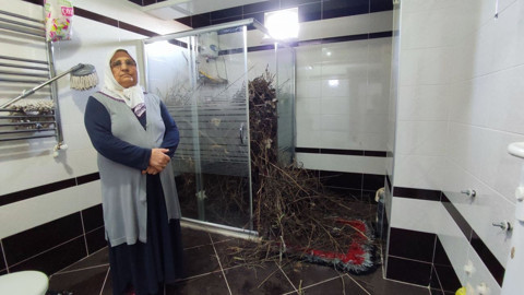 Galerinin tamamı için tıklayınızİki yıldır boş duran evin banyo camından giren kargalar, evin banyosunda bulunan duşa kabini ağzına kadar çöp ve dallarla doldurdu. Evden gelen karga sesleri sonrasında Ramazan Aydın’ın annesi Tükeziban Aydın harekete geçti. Şehir dışındaki oğlunun evin anahtarını kendisine göndermesi neticesinde eve giren anne, banyodaki manzara karşısında şok oldu.
