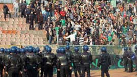 karşı karşıya gelen konuk takım taraftarlarını durdurmak için polis
