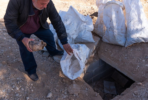 Galerinin tamamı için tıklayınızMezarlardan çıkarılan çuvalların içinin ceset kalıntılarıyla dolu olduğu görüldü. Çukurlardan birinden içi ceset kalıntılarıyla dolu 8 çuval çıkarıldı.