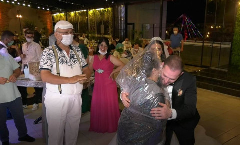 Samsun'da düğünde görülmemiş önlem: Kafasına poşet geçirip gelin ve damada sarıldı