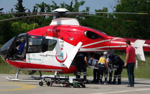 Samsun'da felç geçiren garsonun imdadına ambulans helikopter yetişti!
