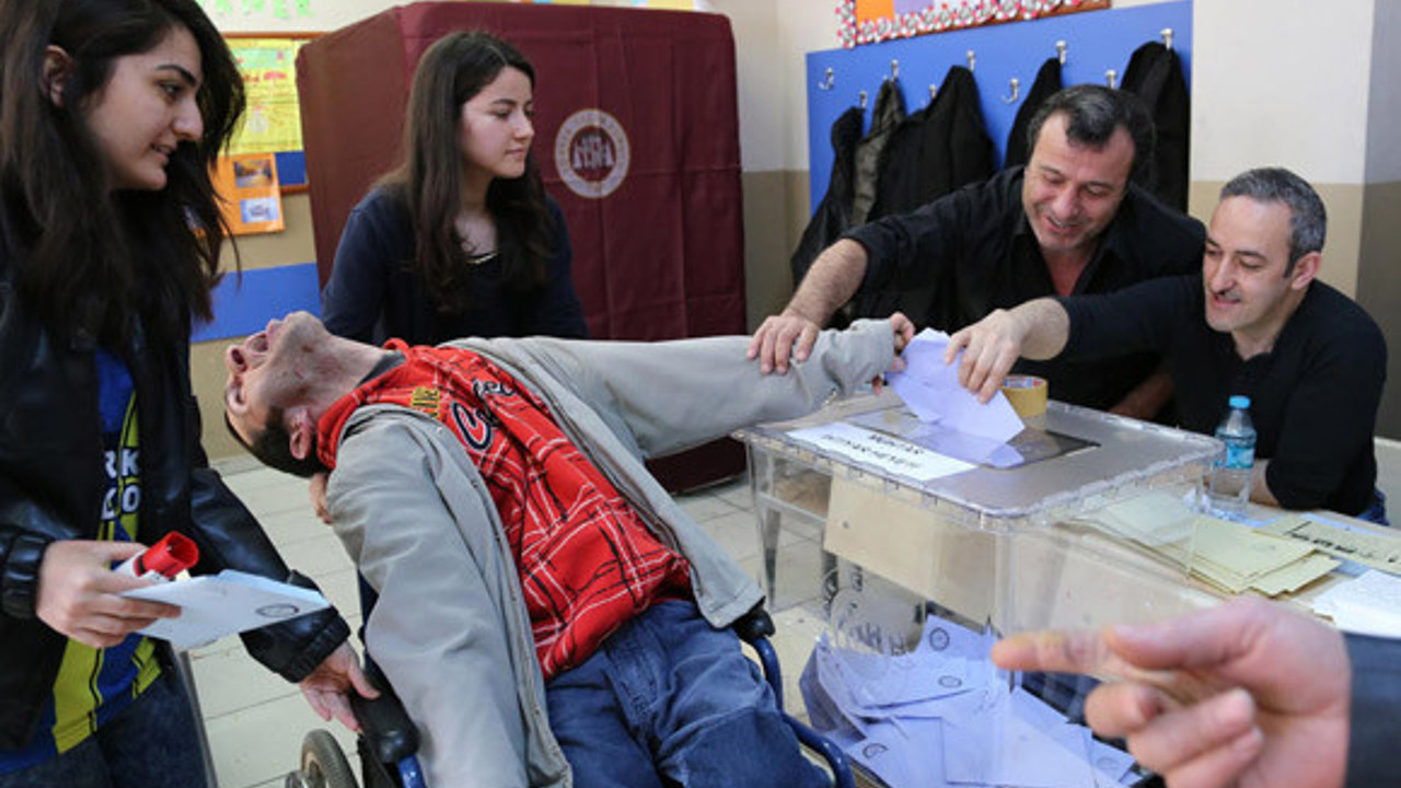 2014 Yerel Seçimleri'nde oy kullanma işlemleri İstanbul'da saat 08.00 itibarıyla başladı. Seçimlerde engelli vatandaşlar da yakınlarının yardımı ile oy verdi. Konya'da vatandaşlar oy kullanmaya başladı. Halkapınar ilçesi Yayıklı köyünde yaşayan 37 yıl önce geçirdiği rahatsızlık sonucu iki bacağı kesilen Mehmet Helvacı (62) ellerinin yardımıyla hareket edebiliyor. Helvacı, oyunu kullanmanın mutluluğunu yaşadı. Mardin'in Kızıltepe ilçesi Akyazı köyünde bazı vatandaşlar yöresel kıyafetlerle sandıkta oy kullanması renkli görüntüler oluşturdu. Üzerlerinde beyaz fistan başlarında puşi takan vatandaşlar oylarını giydikleri yöresel kıyafetlerle kullandı. Türkiye, 5 yıl boyunca görev yapacak yerel yöneticileri seçmek için bugün sandığa gidiyor. Kentte etkili olan yoğun kar yağışı nedeniyle vatandaşlar oy kullanacakları okullara gitmekte güçlük çekti. Osmanlı Padişahı 2. Abdülhamit'in Doğu Anadolu'da Ermenistan devletinin kuruluşunu engellemek için kurduğu bir Osmanlı birliği olan Hamidiye Alayı'nda görev yapan ve 130 yaşında olduğunu bildirilen Mehmet Esen, Siirt'in Eruh ilçesinde sandık başına gitti. 2014 Yerel Seçimleri'nde oy kullanma işlemleri İzmir'de saat 08.00 itibarıyla başladı. Bir vatandaş oy kullanma işlemini çocuğuyla birlikte yaptı. Türkiye, 5 yıl boyunca görev yapacak yerel yöneticileri seçmek için sandığa gidiyor. İstanbul'da vatandaşlar oy kullanmaya başladı. 2014 Yerel Seçimleri oy kullanma işlemleri Erzincan'ın Üzümlü ilçesinde saat 07.00 itibarıyla başladı. Bayburt'ta sandık başına giden seçmenler 2014 yerel seçimleri için oy verme işlemine başladı. Kırklareli'de, İstiklal İlköğretim Okulu'nda oyunu kullanan Gülhan Tank (60), aniden rahatsızlandı. Çevredeki vatandaşların yardımıyla okul dışına çıkarılan Tank, sağlık ekiplerince Kırklareli Devlet Hastanesine götürüldü. Van'ın Edremit ilçesine bağlı 38 seçmenin bulundugu Köklü köyünde oy verme işlemi tamamlandı. Oy verme işleminin saat 09.00 itibarıyla tamamlandığı köyde, sandık görevlileri saat 16.00'ya kadar sandığın açılmasını bekleyecek. Edirneli bir tatlıcı, 2014 yerel seçimleri dolayısıyla oy kullanılan okullarda "deva-i misk helvası" dağıttı. 2014 Yerel Seçimleri oy kullanma işlemleri İstanbul'da saat 08.00 itibarıyla başladı.Yaşlıların oy kullanmasına aileleri ve sandık görevlileri yardımcı oldu. Malatya'da engelli Selda İnce, eşinin yardımıyla oy kullanabildi. 2014 Yerel Seçimleri oy kullanma işlemleri Hatay'da saat 08.00 itibarıyla başladı. Hatay'ın Yayladağı ilçesinde vatandaşlar, oy kullanacakları okullara giderek oylarını kullandı. Türkiye, 5 yıl boyunca görev yapacak yerel yöneticileri seçmek için bugün sandığa gidiyor. Seçimler dolayısıyla oy verme işlemleri Şanlıurfa ve ilçelerinde başladı. Siverek'te yürüme güçlüğü çeken bir kişi yaşlı oyunu kullandıktan sonra yakınları tarafından taşınarak araca götürüldü. Türkiye, 5 yıl boyunca görev yapacak yerel yöneticileri seçmek için bugün sandığa gidiyor. Seçimler dolayısıyla oy verme işlemleri Şanlıurfa'da başladı. Bitlis'te 2014 yerel seçimleri için oy kullanma işlemi Bitlis'te saat 07.00'de başladı. Yoğun kar yağışına rağmen vatandaşlar, sabahın erken saatlerinden itibaren oy kullanmak için sandık başına gitti. Oyunu kullanmakta sıkıntı yaşayan yaşlılara, sandık görevlileri yardımcı oldu. 2014 Yerel Seçimleri oy kullanma işlemleri Erzincan'ın Üzümlü ilçesinde saat 07.00 itibarıyla başladı. Muş, Bitlis ve Van'da sabah saatlerinden itibaren başlayan kar yağışı yaşamı olumsuz etkiledi. Van'da da sabah saatlerinde etkili olan fırtına ve kar yağışı, özellikle oy kullanmaya giden vatandaşlara güç anlar yaşattı. 2014 Yerel Seçimleri oy kullanma işlemleri başladı. Afyonkarahisar'da, engelli bir kişi, okulun önüne gelen sandık görevlileri huzurunda oyunu kullandı. 2014 Yerel Seçimleri oy kullanma işlemleri başladı. Göynük ilçesinde MS hastası kadın, oy kullanacağı sandığa akrabalarının sırtında getirildi. Ocağız Köyünde yaşayan multipl skleroz (MS) hastası 39 yaşındaki Vasfiye Çay, felçli olmasına rağmen oy kullanmaktan vazgeçmedi.
