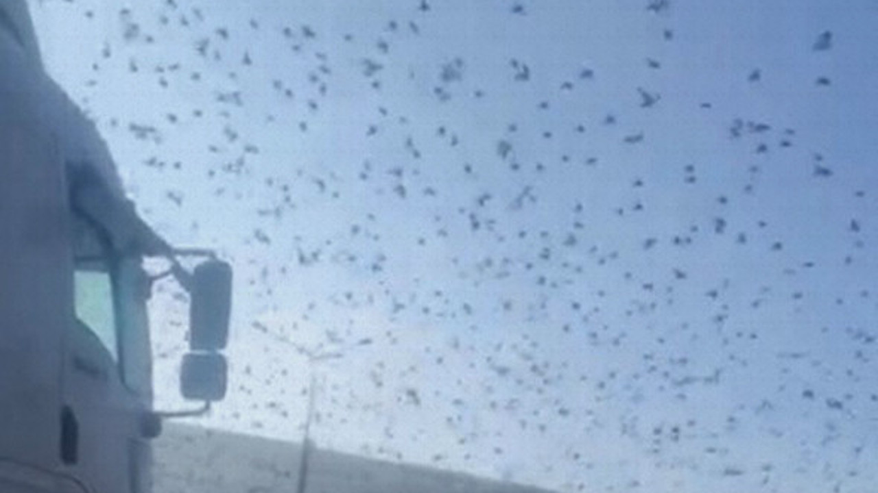 ÇANAKKALE - İzmir Karayolu'nun 10'uncu kilometresindeki Güzelyalı köyü kavşağında sabah saatlerinde binlerce sığırcığın gökyüzündeki dansları görenleri etkiledi ancak binlerce kuş bir süre sonra karayoluna indi. Bu sırada yolda seyir halindeki bir kamyon, sığırcıkların yolu kapatması nedeniyle durmak zorunda kaldı. Kamyon sürücüsü, kuşları ürkütmek ve zarar vermek istemediği için bir süre bekledi ama karabulut gibi asfaltı kaplayan sığırcıklar, yoldan gitmedi. Kamyon şoförü, korna çalmak zorunda kaldı. Sığırcıkların korna sesiyle havalanması üzerine kamyon yoluna devam ederken, tüm bu anlar yayındaki otomobilin sürücüsü tarafından saniye saniye görüntülendi. Sığırcıklar ise, gökyüzündeki danslarına devam etti.