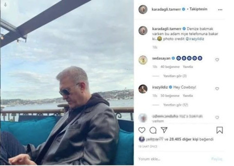 Galerinin tamamı için tıklayınızFotoğrafı Instagram hesabından yayınlayan Karadağlı, "Denize bakmak varken bu adam niye telefona bakar ki" diyerek Iraz Yıldız'ı etiketlemişti.