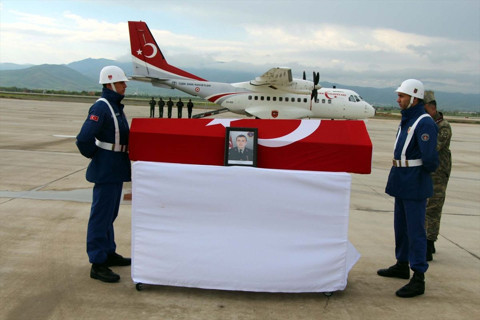 İl Müftüsü Yusuf Sarıkaya'nın okuduğu duanın ardından şehit askerin cenazesi, uçakla memleketi Kırıkkale'ye uğurlandı.