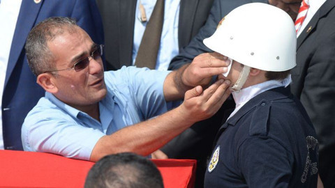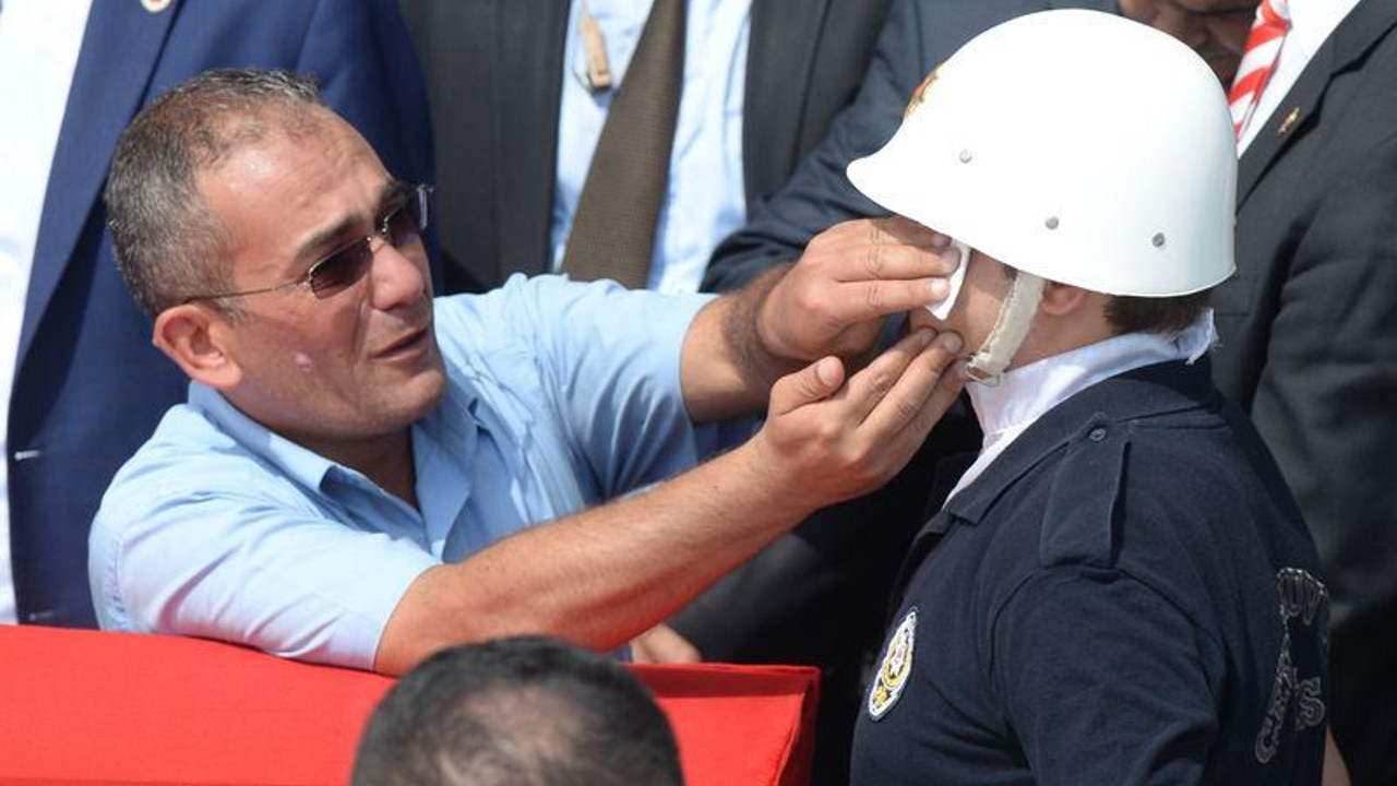 Türkiye şehitlerine ağlıyor. Iğdır'da PKK'nın saldırısı sonucu şehit olan polislerimizin cenazeleri toprağa verildi. Cenaze törenlerinde gözyaşları sel oldu. Şehit babasının gözyaşlarını tutamayan polisin gözyaşlarının silip öpmesi yürekleri kanattı.