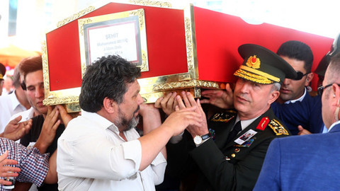 Şırnak’ta 11 Ağustos’ta bölücü terör örgütü mensupları ile girdiği çatışmada ağır yaralanan ve Ankara’da tedavi gördüğü hastanede dün şehit olan Jandarma Uzman Onbaşı Muhammed Meriç için az önce Ahmed Hamdi Akseki Camii’nde cenaze töreni vardı. Şehit Jandarma Uzman Onbaşı Muhammed Meriç son yoculuğuna uğurlanırken askeri bando ilk kez Frederich Chopin’in cenaze marşı yerine Itri’nin Tekbir’ini seslendirdi. Törene Genelkurmay Başkanı Orgeneral Hulusi Akar, İçişleri Bakanı Süleyman Soylu, MHP Lideri Devlet Bahçeli ile şehidin yakınları ve çok sayıda vatandaş katıldı. Cenaze namazının kılınmasından sonra Şehid Meriç son yoculuğuna uğurlanırken askeri bando ilk kez Frederich Chopin’in cenaze marşı yerine Itri’nin Tekbir’ini seslendirdi. Şehit Meriç Karşıyaka Mezarlığı’nda toprağa verildi. Törende, TBMM İdare Amiri ve AK Parti Ankara Milletvekili Ahmet Gündoğdu, protokol sırasında kenarda kalan MHP Genel Başkanı Devlet Bahçeli'yi orta sıralara davet etti. İşte törenden kareler....