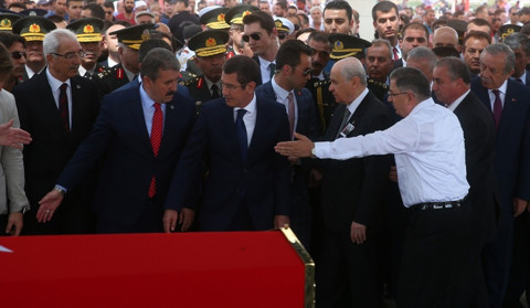Galerinin tamamı için tıklayınızTörende, TBMM İdare Amiri ve AK Parti Ankara Milletvekili Ahmet Gündoğdu, protokol sırasında kenarda kalan MHP Genel Başkanı Devlet Bahçeli'yi orta sıralara davet etti.