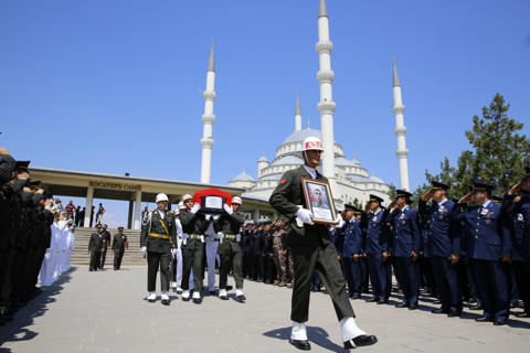 Şırnak'ın Uludere ilçesinde askeri aracın geçişi sırasında PKK'lı teröristlerce yola döşenmiş bombanın infilak ettirilmesi sonucu şehit düşen Piyade Er Bayram Kavcı için Kocatepe Camii'nde cenaze töreni düzenlendi. TÖRENE KATAR GENELKURMAY BAŞKANI DA KATILDI Cenaze törenine Katar Genelkurmay Başkanı Ghanim bin Shaheen El-Ghanim Genelkurmay Başkanı Orgeneral Hulusi Akar ve Milli Savunma Bakanı Fikri Işık da katıldı. ŞEHİT BABASINI ALNINDAN ÖPTÜ Katar Genelkurmay Başkanı Ghanim bin Shaheen El-Ghanim taziyelerini ilettiği şehit babasını alnından öptü.