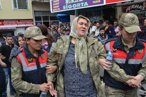 Galerinin tamamı için tıklayınızTürk bayraklarıyla donatılan Hükümet Konağı Caddesi'nde askeri bandonun bulunduğu kortej eşliğinde tekbirler getirilerek bir süre taşınan şehit Hacımahmutoğlu’nun cenazesi Boztopraklı Mahallesi'ndeki mezarlıkta toprağa verildi.