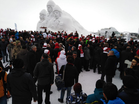Şehit Mehmetçiklerin kardan heykellerine yoğun ilgi! Bakanlar da oradaydı