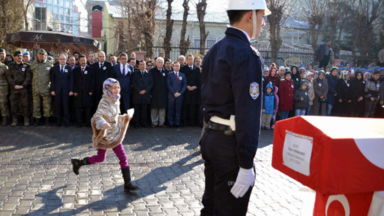 Siirt'te dün hücre evlerine düzenlenen operasyonda şehit olan polis memuru Yalçın Yamaner’in naaşı düzenlenen cenaze töreninin ardından memleketine uğurlandı. Cenazeye katılan binlerce Siirtli, terör örgütü PKK’ya lanet yağdırdı. ŞEHİT KIZININ FERYADI: "ŞEHİTLER ÖLMEZ" Şehit polis memuru 9 yaşındaki kızı Begüm ise, babasının tabutuna sarılarak “şehitler ölmez” şeklinde feryat etti. Begüm’ün feryadı alanda bulunanların yüreklerini dağladı. Tören alanında toplanan binlerce Siirtli vatandaş, tören bitene kadar sık sık terör örgütü PKK'ye lanet okuyan sloganlarda bulundu. Kalabalık vatandaş, şehit naaşının tören alanından götürülüşü sırasında şehit cenazesini polis mangasından alarak cenaze aracına götürdü. Vatandaşlar, sık sık “Kahrolsun PKK” ve “Vatan sana canım feda, şehitler ölmez” sloganları attı. Şehit Yamaner'in cenazesi daha sonra cenaze aracına bildirilerek, havayoluyla memleketi orduya gönderildi.
