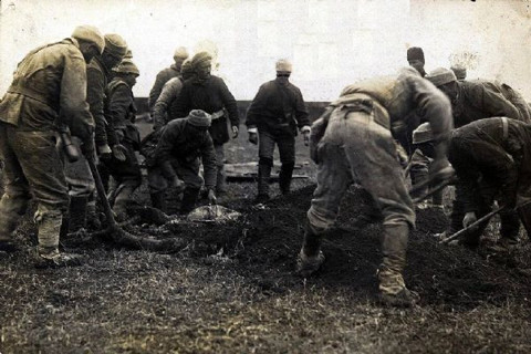 Galerinin tamamı için tıklayınızRus Ordusu geri çekilirken, Osmanlı askerleri öldürülen Müslüman sivilleri gömüyordu, 1918