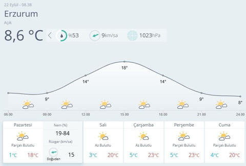 Meteoroloji'den alınan bilgiye göre bugün yurt genelinde açık ve az bulutlu bir hava bekleniyor. Karadeniz'in iç kesimlerinden sıcaklık, 3 ilâ 5 derece yükseliyor. Marmara, Kuzey Ege ve Doğu Anadolu'da kuvvetli rüzgar var. İşte illerimizde hava durumu ve sıcaklıklar...Meteoroloji'den alınan bilgiye göre bugün yurt genelinde açık ve az bulutlu bir hava bekleniyor. Karadeniz'in iç kesimlerinden sıcaklık, 3 ilâ 5 derece yükseliyor. Marmara, Kuzey Ege ve Doğu Anadolu'da kuvvetli rüzgar var. İşte illerimizde hava durumu ve sıcaklıklar... Meteoroloji Genel Müdürlüğü tarafından yapılan tahminlere göre ülkemizin kuzey ve doğu kesimlerinin parçalı, yer yer çok bulutlu, diğer yerlerin az bulutlu ve açık geçeceği tahmin ediliyor.KARADENİZ'DE SICAKLIK ARTIYOR Hava sıcaklığının, Karadeniz'in iç kesimlerinde 3 ila 5 derece artacağı, diğer yerlerde önemli bir değişiklik beklenmiyor. 3 BÖLGEDE KUVVETLİ RÜZGAR Rüzgarın genellikle kuzeyli yönlerden hafif, ara sıra orta kuvvette, Marmara, Kuzey Ege, Doğu Anadolu'nun güneybatısında kuvvetli (40-60 km/saat) esmesi bekleniyor.