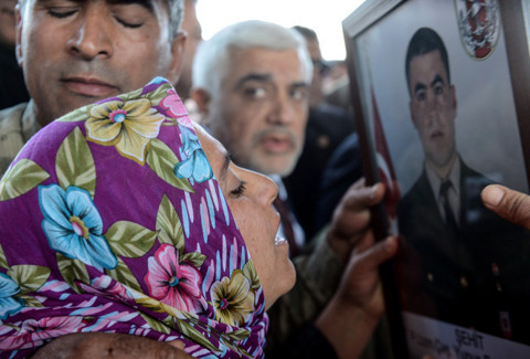 Galerinin tamamı için tıklayınızKilis’in Polateli ilçesine bağlı Karapınar köyünde düzenlenen törenle son yolculuğuna uğurlanan Piyade Uzman Çavuş Yunus Emre Doğan’ın yakınlarının ağıtları yürek yaktı. Şehidin annesi Gülizar Doğan ve babası Hanifi Doğan görevlilerin yardımıyla ayakta zor dururken, yakınlarına sağlık ekipleri müdahale etti. Şehit Piyade Uzman Çavuş Yunus Emre Doğan’nın cenaze namazı Kilis Müftüsü Mahmut Karatepe tarafından kıldırıldı.