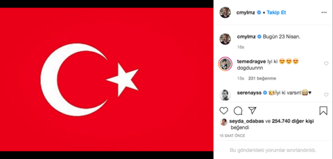 Galerinin tamamı için tıklayınızSarıkaya, Cem Yılmaz için "İyi ki varsın" yazıp bir de siyah kalp koydu. Hayranları Serenay Sarıkaya'nın yorumunu beğeni yağmuruna tuttu.