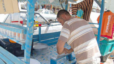 2 yıldır yaz aylarında karlambaç satarak geçimini sağlamaya çalışan karlambaç ustası, "Bu mesleği Adana'da öğrendim. Önceleri kaselere buz rendeliyoruz. Sonrada tatlandırıcı boya koyuyoruz.
