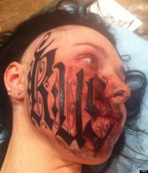 Sevgilisinin yüzüne kendi adını kazıdı!