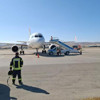 Yolcuların uçaktan tahliye edilerek terminale alındığı