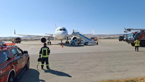 İçerisinde 144 yolcu ve mürettebatın bulunduğu öğrenilen uçak, ARFF ekiplerinin eşliğinde güvenli bir park alanına çekildi.