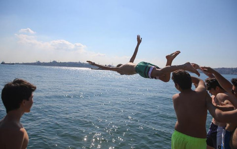 Sıcak havadan bunalan İstanbullular kendini sahile attı
