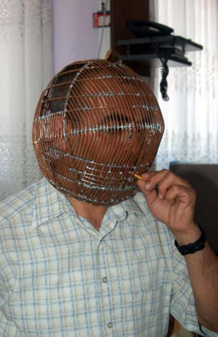 Sigara içmemek için başını kafese kilitliyor!