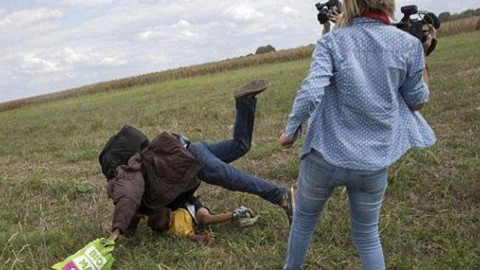Macaristan-Sırbistan sınırında polisten kaçmaya çalışan sığınmacılara tekme atıp çelme takan kameraman Petra Laszlo'ya verilen 3 yıl hapis cezası onandı. Szeged Bölge Mahkemesi'nde görülen duruşmada Suriyeli mülteciyi savunan Helsinki Komisyonu'nun avukatı, sanık Laszlo'nun topluluğa karşı şiddete başvurmak ve suça teşebbüs suçundan yargılanması gerektiğini savundu. AVUKATININ TALEBİ REDDEDİLDİ Laszlo'nun avukatı ise daha önce verilen kararın iptalini talep etti. Hakim Andras Szabo, sanık Laszlo'ya verilen 3 yıllık hapis cezasının onandığını açıkladı. SIĞINMACIYA TEKME ATMIŞTI 2015 yılı Eylül ayında, Macaristan-Sırbistan sınırındaki Röszke kasabasında görev yapan kameraman Petra Laszlo'nun, polisle sığınmacılar arasından çıkan arbede sonrası kaçmaya çalışan sığınmacı küçük kıza tekme atması ve kucağındaki çocuğuyla kaçmaya çalışan babayı çelme takıp düşürmesi büyük tepkilere neden olmuştu. Olayın hemen ardından kameramanın işine son verilmiş, hakkında dava açılmıştı.