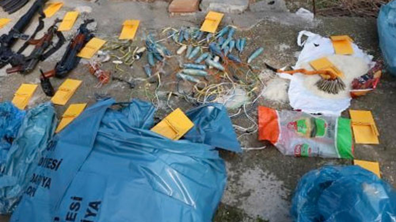 ŞIRNAK'ın Silopi İlçesi'nde güvenlik güçleri, ihbar üzerine bir evin ahırında yaptıkları aramalarda, PKK'lı teröristlere ait çok sayıda silah ve mühimmat ele geçirdi. Operasyonda ilk kez kasaturalı kalaşnikoflar ele geçirildi. Silopi İlçe Emniyet Müdürlüğü'ne gelen bir ihbar üzerine harekete geçen polis ekipleri, ihbarın yapıldığı ahırda yaptıkları aramalarda PKK'lılara ait silah ve patlayıcı madde ele geçirdi. KALAŞNİKOFLARA KASATURA Ele geçirilen malzemeler içerisinde teröristlerin kalaşnikof silahlara yakın dövüşlerde kullanılan kasatura takmaları dikkat çekti. PKK'lılar ayrıca patlayıcıları ateşlemek için kullandıkları kapsüllerin nemlenmesini engellemek için pirinç kutularına gizledikleri görüldü. Güvenlik güçlerinin ahırda yaptıkları aramada, 10 kilogramlık yağ bidonu içerisine C3 karışımlı patlayıcı, 49 elektrikli kapsül, 35 C3 yemlemeli elektrikli kapsül, 10 kilo amonyum nitrat karışımlı el yapımı patlayıcı, 1 roket atar silahı, 1 kasatura takılı kalaşnikof silah, 1 şarjörsüz kaleşnikof silah, 5'i uzaktan kumanda düzenekli olmak üzere 11 telsiz, 7 kalaşnikof marka silaha ait şarjör, 89 fişek, içerisinde pirinç bulunan 5 kiloluk plastik kutu içerisinde 368 adet normal patlayıcı, patlatmaya yarayan kapsül bulundu. Ele geçirilen silahlarla ilgili 2 kişi gözaltına alındı.