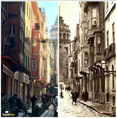 Galerinin tamamı için tıklayınızSosyal medyada "Hayalleme" adlı bir hesap nostaljik İstanbul fotoğraflarını günümüz fotoğrafları ile karşılaştırmalı olarak paylaşıp, İstanbul'un nasıl büyük bir değişime uğradığını gözler önüne seriyor. İşte bizi nostalji tüneline götüren o fotoğraflar. İstanbul'un günümüz trafik, inşaat ve insan yoğunluğunu hepimiz biliyoruz. Peki 100 yıl önce İstanbul nasıl bir yerdi? İstanbul nasıl bir süreç geçirdi? Nostaljik fotoğraflara baktığımızda neler olduğunu, nasıl değiştiğini görmek mümkün. Eski İstanbul mu şimdiki İstanbul mu seçim sizin. İşte eski ve yeni İstanbul fotoğrafları... 2017 ve 92 yıl önce Büyük Hendek Caddesi'nden Galata Kulesi.
