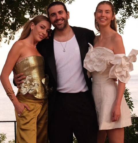 Saten bir pantolon ve ona uyumlu straplez büstiyer giyen Sinem Kobal partiden kareleri sosyal medya hesabında takipçileriyle de paylaştı.
