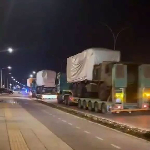 Galerinin tamamı için tıklayınızYerel halk, kısmen gizlenmiş kamyonlardan oluşan konvoyun görüntülerini sosyal medyada paylaştı; kamyonlar Barak MX hava savunma sisteminin mobil versiyonu olarak değerlendiriliyor.