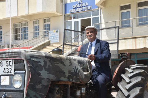 Sivas Gölova Belediye başkanı makam aracı olarak 36 yıllık traktörünü kullanıyor