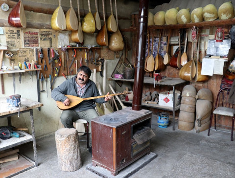 Galerinin tamamı için tıklayınızVeysel'in bağlamasıyla zaman zaman konser veren, müzik dinletileri sunan İyidoğan'ın atölyesinde Davut Sulari ve Müslüm Ağbaba gibi ozanların da sazları bulunuyor.