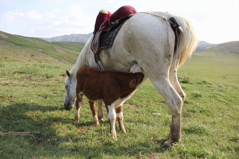 Sivas'ta annesi olmayan danayı at emziriyor merhametin böylesi