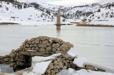 Sivas'ta sular altında kalan köyden ilginç görüntüler