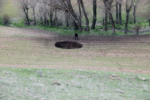 Galerinin tamamı için tıklayınızGökkaya, AA muhabirine yaptığı açıklamada, tarlada iki gün önce oluşan obruğu babasının gördüğünü ve kendisine haber verdiğini söyledi.