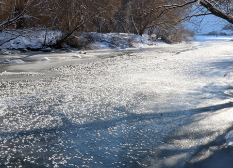 Hava sıcaklığının sıfırın altında 30 dereceye kadar düştüğü bölgede, ırmağın üzerindeki buz kalınlığı 10 santimetreye ulaştı.