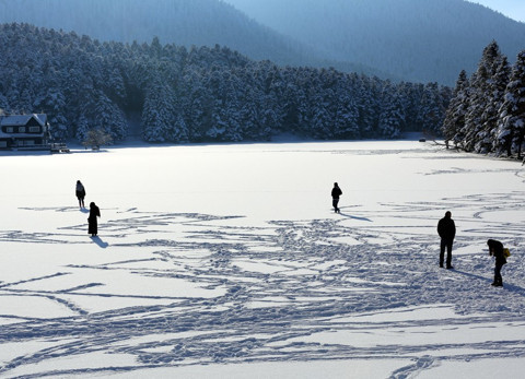 Bir diğer buz tutan bölge ise Bolu'nun Abant ve Gölcük gölü oldu.