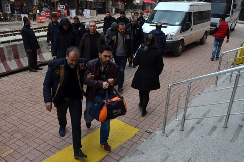 Galerinin tamamı için tıklayınızHATAY : ÖĞRETMEN VE İŞADAMLARI VAR Hatay Cumhuriyet Başsavcılığı, telefonlarında FETÖ üyelerinin kullandığı şifreli haberleşme programı "ByLock" bulunduğu belirlenen, öğretmen ve iş adamları hakkında gözaltı kararı çıkardı. Bunun üzerine Hatay İl Emniyet Müdürlüğü Kaçakçılık ve Organize Suçlarla Mücadele Şubesi ekiplerince Hatay, Adana, İstanbul ve İzmir'de belirlenen adreslere eş zamanlı operasyon yapıldı. Operasyonda, "ByLock"u kullandığı iddia edilen 7 öğretmen ve 3 iş adamını gözaltına alındı. Zanlıların emniyetteki işlemleri sürüyor.
