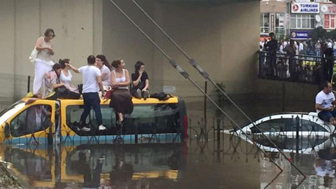 Dün İstanbul’u etkisi altına alan dolu ve fırtına çok sayıda çarpıcı fotoğraf karesine de yansıdı. Söz konusu görüntülerden biri Aksaray’daki alt geçitte kaydedildi. Taksim-Bakırköy arası yolcu taşıyan bir dolmuşun üstündeki 8 yolcu ve şoförün görüntüsü sosyal medyada da çokça konuşuldu. Sosyal medyada fotoğraf sonrası 'yolculardan para mı toplandı' söylentisi yayılmıştı. Açar olayın aslını şöyle anlattı: Beyaz tişörtlü o genç olmasaydı çok daha büyük bir sıkıntı yaşardık. Allah ondan razı olsun. Yolcuları aracın üzerine çıkardıktan sonra onların ihtiyaçlarını karşılamaya çalıştık. Görüntülere yansıyan, beyaz tişörtlü gencin elini uzatması vs. sanırım o arada birbirlerine sigara vs. verdiler. Bu türden ihtiyaçlar giderilmeye çalışılıyordu. İstanbul'da dünkü yağışlar sırasında Fatih Aksaray'da lögarın patlaması nedeniyle yol tamamen sular altında kaldı. Yağmur ve doluya hazırlıksız yakalananO aracın şoförü konuştu... bazı vatandaşlar metrobüs durakları, üst geçitlerin altları, iş yerleri ve bina girişlerinde yağışın dinmesini bekledi. Taksim-Bakırköy arası yolcu taşıyan bir dolmuşun üstündeki 8 yolcu ve şoförün görüntüsü sosyal medyada da çokça konuşuldu. hurriyet.com.tr dolmuşun şoförü Mahmut Açar ile konuştu. 51 yaşındaki Mahmut Açar 30 yıla yakın bir süreden beri dolmuş şoförlüğü yapıyor. Dün de Taksim’den 7’si kadın 8 yolcu ile yola çıkan Açar, Bakırköy’e gidiyordu. Aksaray’daki bir alt geçide gelindiğinde olanlar oldu. Yağmur suları bir anda aracın sular içinde kalmasına sebep oldu. Bu sırada yolcular çığlık çığlığa bağırmaya başladı. Açar o anları “Hemen hızla kapıyı açarak kadınları aracın üstüne çıkarmaya başladık. Bana, araçta bulunan genç erkek arkadaş yardım etti. Kadın yolculardan biri çok korktu ve sürekli ağlıyordu. Beyaz tişörtlü o genç olmasaydı çok daha büyük bir sıkıntı yaşardık. Allah ondan razı olsun. Yolcuları aracın üzerine çıkardıktan sonra onların ihtiyaçlarını karşılamaya çalıştık. Bazıları birbirlerine sigara verdi. Biz bir süre o şekilde bekledik. Daha sonra itfaiye araçları geldi ve merdiven uzatarak yolcuları kurtardık” dedi. PARA TOPLANMASI SÖZ KONUSU DEĞİL Açar, sosyal medyada da ‘o sıralarda yolculardan para toplandı’ söylentilerine ilişkin ise “Hayır asla öyle bir şey olmadı. Yolculara da bu sorulabilir. Biz zaten yola çıkığımız anda ücreti alıyoruz. Ki öyle bir anda olacak şey değil. Görüntülere yansıyan, beyaz tişörtlü gencin elini uzatması vs. sanırım o arada birbirlerine sigara vs. verdiler. Bu türden ihtiyaçlar giderilmeye çalışılıyordu. Dediğim gibi öyle bir anda para toplanması söz konusu olmaz” şeklinde konuştu. MOTOR ARIZA YAPTI Açar, söz konusu araçta günlük yevmiye ile şoför olarak çalıştığını, aracın su içinde kalması nedeni ile motorunda sorun çıktığını anlattı. Açar, oluşan zararın afet nedeni ile giderilmesini beklediklerini aktardı.