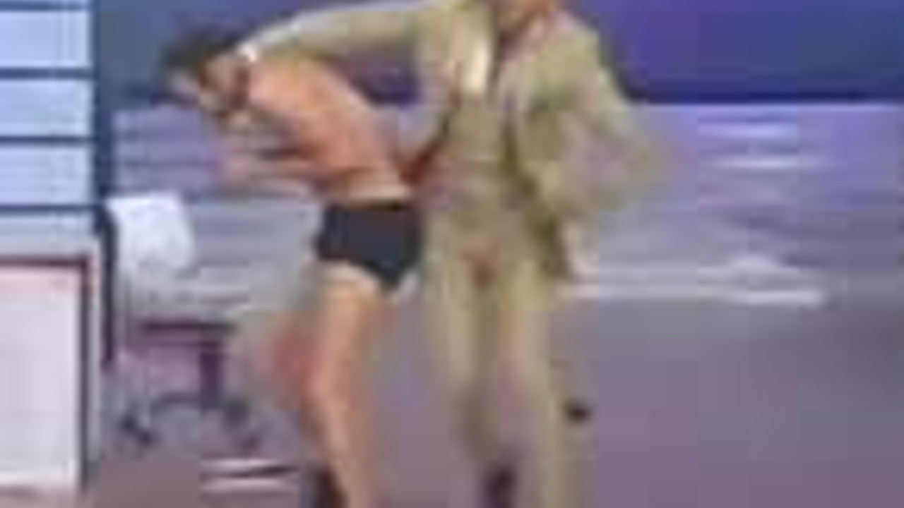 Türkiye’de Acun Ilıcalı’nın sunduğu “Yok Böyle Dans” şovunun Arjantin’de yayınlanan versiyonunda dans eden çift ulusal kanalda striptize başlayınca programın sunucusu kritik bir anda müdahalede bulundu. Ünlü model Silvina Escudero ve partnerinin, sekreter ve temizlikçi konseptiyle başlayan şovunda, çift kısa süre içinde soyunarak iç çamaşırlarıyla kaldı. Ateşli şovun sonuna doğru partneri, Escudero’nun sutyenini de çıkarınca panik yaşayan sunucu, kendini sahneye attı. Önce çiftin önünü kapattı, daha sonra yerdeki kâğıtlara ve sahnedeki masaya tekmeler savurarak dikkatleri dağıtmayı denedi. Escudero ise göğüslerini kapatarak sahneyi terk etti. İşte o dans ve sunucunun hali...