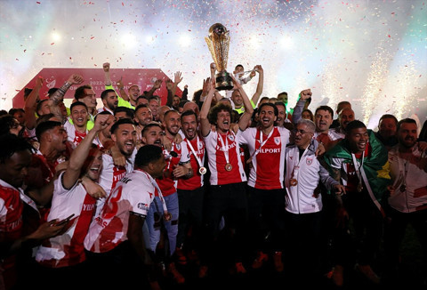 Kırmızı-beyazlı futbolcular, daha sonra takım halinde kupayı kaldırarak büyük sevinç yaşadı. Futbolcular töreninin ardından kupayla tribündeki taraftarları selamladı.